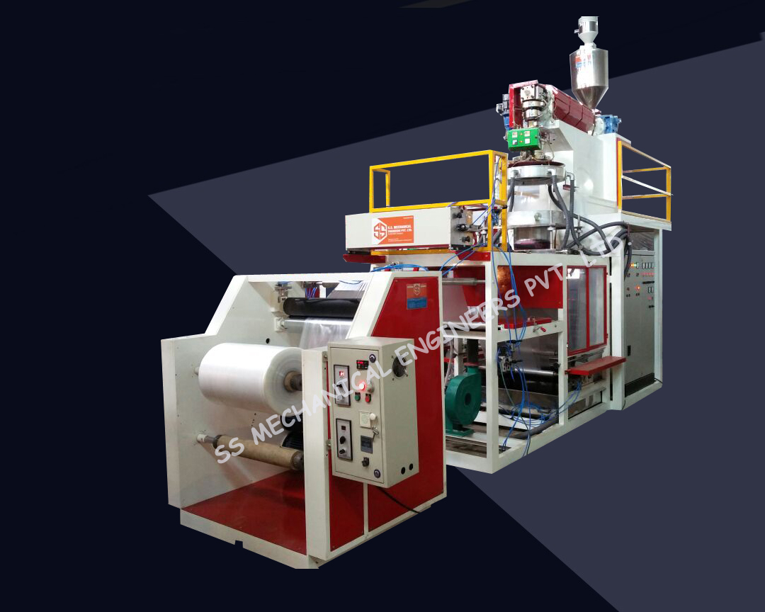 Our Blown film machines incorporate advanced features like-grooved feed barrel, barrier screw, dosing system, Liquid PIB dosing system, manual as well as automatic screen changer, Rotating Die/ platform , internal bubble cooling, automatic bubble cage, online thickness monitoring and control, Surface and center winders , Auto tension control, Corona treaters etc. for longer life, higher productivity and better quality.